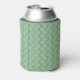 This can cooler has an art deco design of blue and purple half circles connect with lines on a field of light green.