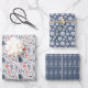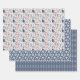 A coordinated set of gift wrap sheets with a nordic folk art feel in blues and reds.