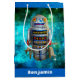 Blue sci fi retro toy robot galaxy custom name medium gift bag