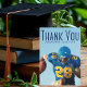 Thank You written in tall blue typography over your senior portrait graduate photo makes a simple graduation thank you card for a football player on a sports team. Customise with your name and class of 2023 on these minimalist text overlay graduate cards. Write a personalised message of thanks on the back.