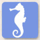 This white seahorse on a blue background is part of a mix and match series with sea creatures and shells in a variety of colours. This image is available on a variety of other products, as well as matching images, just click the link below the photo near 'About this Design'.