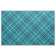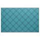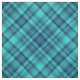 A colourful pattern of random diagonal stripes in shades of aqua, royal and navy blue striped checks or plaid.
