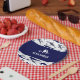 Add a touch of the ocean to the birthday party of your little boy with this custom blue and white shark pattern paper plate. Each plate has cute sharks swimming in the sea and your little one's first name.