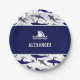 Blue Shark Pattern with Name Boy Birthday Party Paper Plate