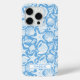 Customize this blue shell pattern iPhone 15 pro case with your your name in a trendy modern CAP font in blue on white. It's so modern and beachy!