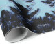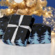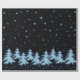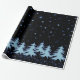 Blue shiny Christmas trees and stars on night sky Wrapping Paper