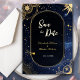Blue shooting star Celestial sun and moon wedding Save The Date