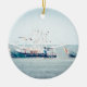 Blue Shrimp Boat on the Ocean Ceramic Tree Decoration