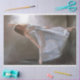 Blue Silken Grace Photo Decoupage by Decoupage_Boutique features a poised dancer mid-extension, her flowing gown captured in soft silken motion. Rendered in delicate photo-realism with warm light and painterly atmosphere, this design evokes freedom, grace, and quiet strength.