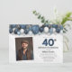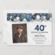 Blue Silver Black & White 40th Birthday Photo Invitation