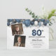 Blue Silver Black & White 80th Birthday 2 Photo Invitation