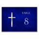 This is an elegant reception table card with a pretty silver cross and text on a bright royal blue abstract background. The back of the card is identical to the front. All the text may be easily customised. This card matches the Blue Silver Christian Cross Wedding Invitations" in my store, but is appropriate for a variety of formal dinner occasions.