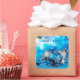 Decorate your home this Christmas with our beautiful Christmas square sticker. Blue, white & silver Christmas balls, candy cane, stars, pearl, bow and Christmas holly.on sparkling blue background give it a beautiful festive look. Perfect for your Christmas gifts and envelopes