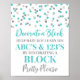 Decorate a block game sign poster for baby shower in light blue and silver confetti pattern. Please note glitter effect is photographic effect only.