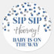 Blue Silver Confetti Sip Sip Hooray Classic Round Sticker