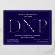 A DNP graduation party invitation with silver foil, white text, and a blue background. Simply add your information, add this invitation to your cart, and celebrate this major accomplishment.