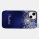 A blue background. The blue colour is uneven. Decorted with faux glitter dust. Personalise and add a name. The first name is written with a modern hand lettered style script.