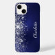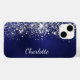 A blue background. The blue colour is uneven. Decorted with faux glitter dust. Personalise and add a name. The first name is written with a modern hand lettered style script.