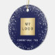 Blue silver glitter sparkle business comapany logo ceramic tree decoration
