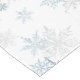 This wintry design features blue and silver-grey snowflakes on a white background! Perfect for all winter long during the holiday season. Comes in multiple sizes for all your table needs!