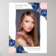 Elegant blue and pink floral photo celebration of life/funeral welcome sign featuring watercolor blue and pink roses and baby's breath flowers decorating a photo inside a silver frame. Matching items available.