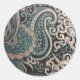 Blue & Silver Paisley Brocade Classic Round Sticker