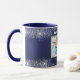 A deep blue background decorated with faux silver glitter, sparkling stars. The blue colour is uneven. Personalise and add your own photo, name and a year. With the text: Merry Christmas. A window overlay over your photo.