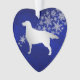 This pretty Holiday ornament will make a wonderful keepsake gift for any one who loves a Setter, whether it be English, Irish, or Gordon! It features a silver silhouette Setter dog image in front of a spray of ornate silver snowflakes. The image is placed on a gradient deep blue background. The back of the ornament has the same blue background and snowflakes, and a text field for you to customise. Beautiful!