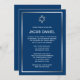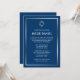 A classic Bar Mitzvah invitation featuring a Star of David design in silver and dark blue. Modern and formal. Easily personalise for your event! Designs are flat printed illustrations/graphics - NOT ACTUAL SILVER FOIL.