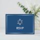 A classic Bar Mitzvah RSVP card featuring a Star of David design in silver and dark blue. Designs are flat printed illustrations/graphics - NOT ACTUAL SILVER FOIL.