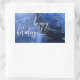 Blue, Silver & White Happy Holidays Greeting Rectangular Sticker