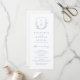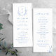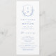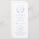 Monogrammed initials framed by elegant crest and hand illustrated botanical leaves, your event details in elegant script and classic font, simple and luxury. Great blue and white programs for modern classic wedding, simple formal wedding, elegant botanical garden wedding.