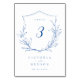 Blue simple botanical crest monogram wedding Table Number