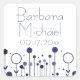 This square sticker features a modern floral design using dots & circles instead of traditional flowers. The design colours are shades of blue ranging from navy blue/royal blue to powder/baby blue with a small amount of dark midnight blue to accent. This could be used as an envelope seal, for party favours, thank you gift tags or a gamut of other uses related to wedding festivities. It was designed to coordinate with our Simple Blue Floral Dot Modern Wedding Suite.