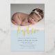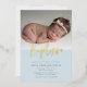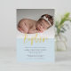 Blue Simple Modern Calligraphy Baptism Photo foil Invitation features one photo, along with modern calligraphy in real foil.