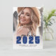 Classic Minimalist Graduation Announcement & Party Invitation. The front features a full-page photo with a white gradient at the bottom that fades seamlessly into the image. Over the gradient, "2026" appears in a bold, classic school-style font in blue. Above the year is "Graduate" in a script font, which can be changed to "Class of" if preferred. Below the year, the graduate's name and school name are elegantly featured. The current design uses black and blue tones for a timeless and sophisticated look, but all colours can be customised to match school colours or personal preferences.