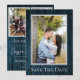 Announce your wedding date to friends and family with this simple and elegant Blue Simple Rustic Photo Save the Date. Announcement design features a rich wooden background and placements for three photos of the happy couple complete with a modern text design.