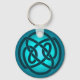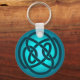 This circular motif on a glowing blue background uses the Celtic Knotwork technique, where a single continuous loop of ribbon is interlaced to form an intricate pattern.