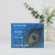 Blue Single Peacock Feather Save the Date Postcard