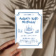 Blue Sketch Line Art Kids Birthday Party Invitation