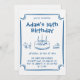 Invite friends and family with this charming blue sketch-style birthday invitation, featuring playful hand-drawn illustrations of a birthday cake, utensils, and a slice of cake. The bold, child-friendly font and simple blue border create a fun and inviting look perfect for kids and teens alike.