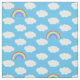 Cute pattern with white clouds, tiny rainbows, on blue for the sky.