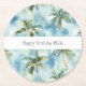 Blue Skies Tropical Island Palm Trees Birthday Round Paper Coaster
