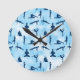 Images of yoga asanas. Custom wall clocks for people that love yoga. Blue sky background.