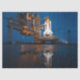 Rain-washed twilight bathed the scene in a cool, ethereal light. The last traces of the storm lingered in the sky, vast and a deep, calming blue. Puddles on the launchpad reflected the soft glow of the Space Shuttle, its belly lit with an intricate dance of white lights. A hushed anticipation hung heavy in the air, broken only by the occasional chirp of a returning bird. As the countdown echoed, tension crackled through the crowd. Then, with a deafening roar that sent shivers down spines, a pillar of orange fire erupted from the engines, momentarily eclipsing the twilight. The shuttle, a beacon in the darkening sky, slowly rose, leaving a trail of white smoke that dissipated into the vast canvas of stars peeking through the thinning clouds. The reflection in the water danced wildly, a fleeting echo of the raw power that propelled humanity's dream machine towards the heavens.