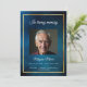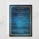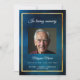 An elegant 2-page program. A dark blue sky as background, a faux gold frame, and space for a photo. Personalise and add name, dates and your text.