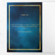 An elegant tri-fold program. A dark blue sky as background, a faux gold frame and space for your photo. Personalise and add name, dates and your text.