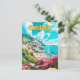 Blue Sky in Positano Italy Art Vintage Travel Painting Postcard