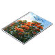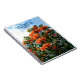 The front of this journal spiral notebook features my original photograph of a tree with blooming orange flowers and a blue cloudy sky. The image was processed in an illustrative and watercolor painterly style with a touch of whimsy in the artwork. Bible Scripture from Colossians 4:2 is at the top of the image.