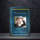 An elegant 4-page program. A dark blue sky as background, a faux gold frame, and space for your photo on the front. Personalise and add name, dates and your text. White text.